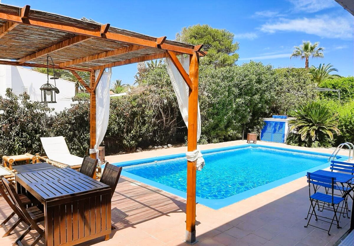 Escape to Menorca, Spain, and unwind in this delightful two-bedroom house with a private pool. Nestled in a peaceful neighborhood just a few minutes’ walk from the sea, it offers a tranquil retreat.